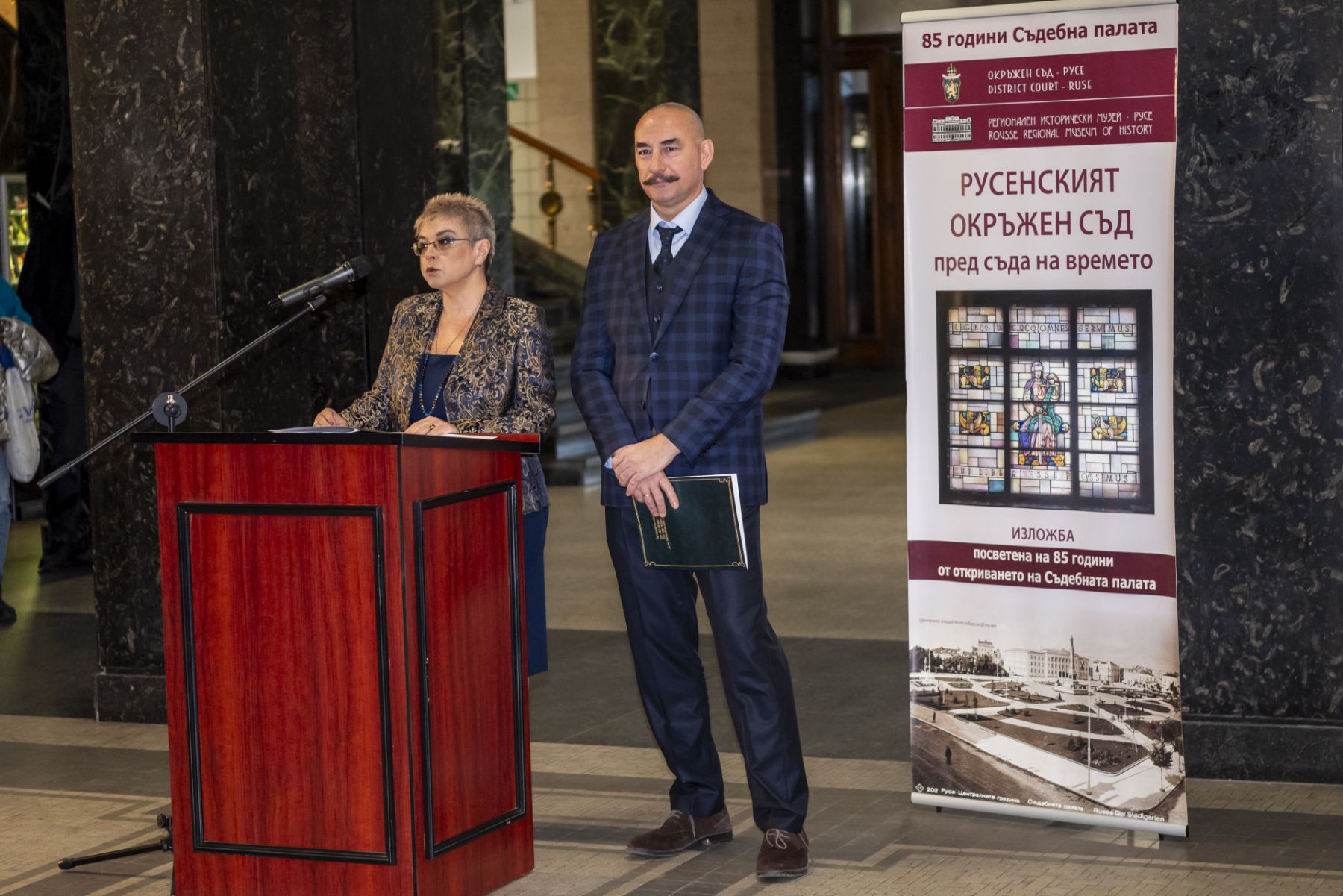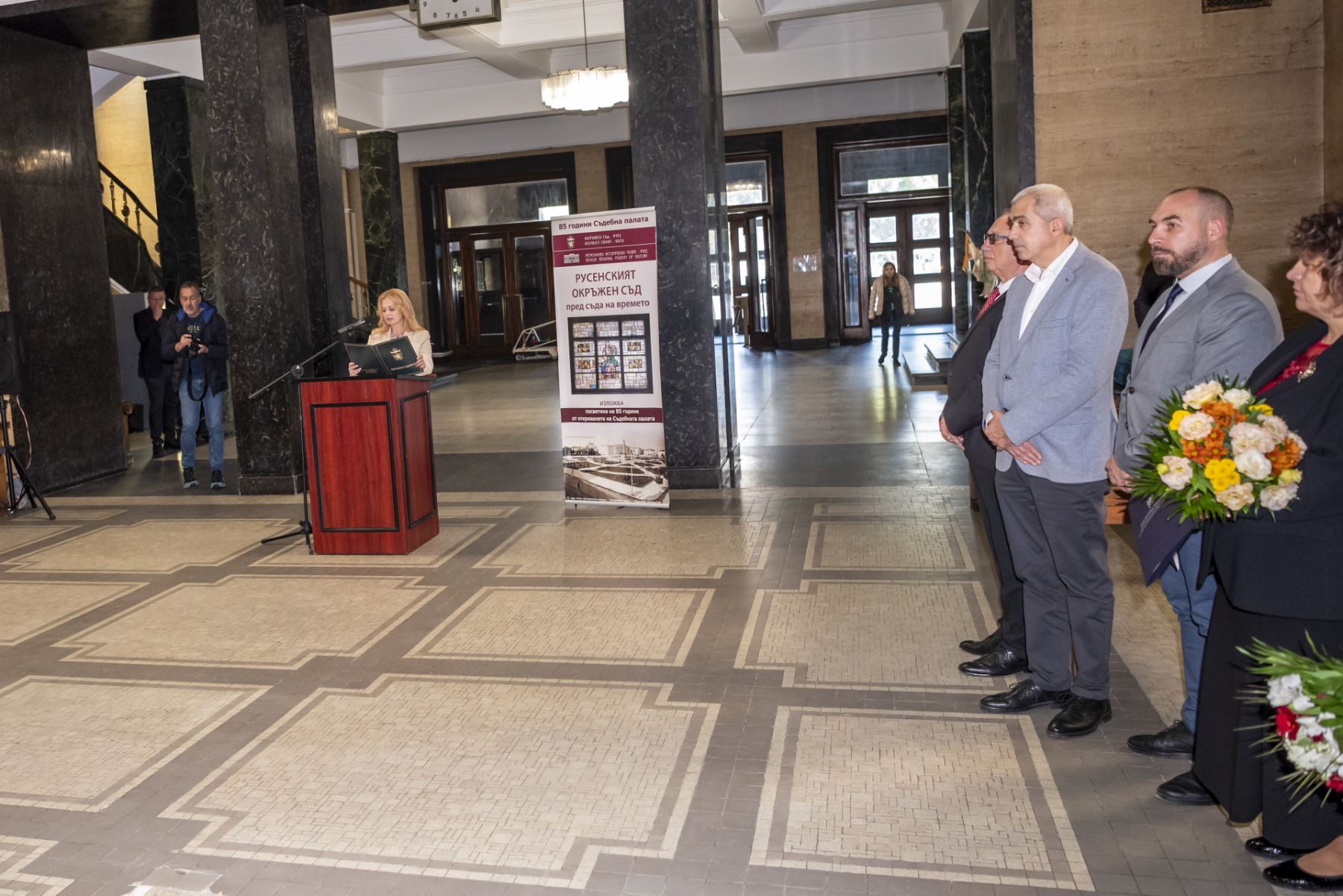 Юбилеят продължи в централното фоайе, където в емоционална реч председателят на Окръжен съд – Русе Николинка Чокоева, подчерта изключителното значение на сградата: