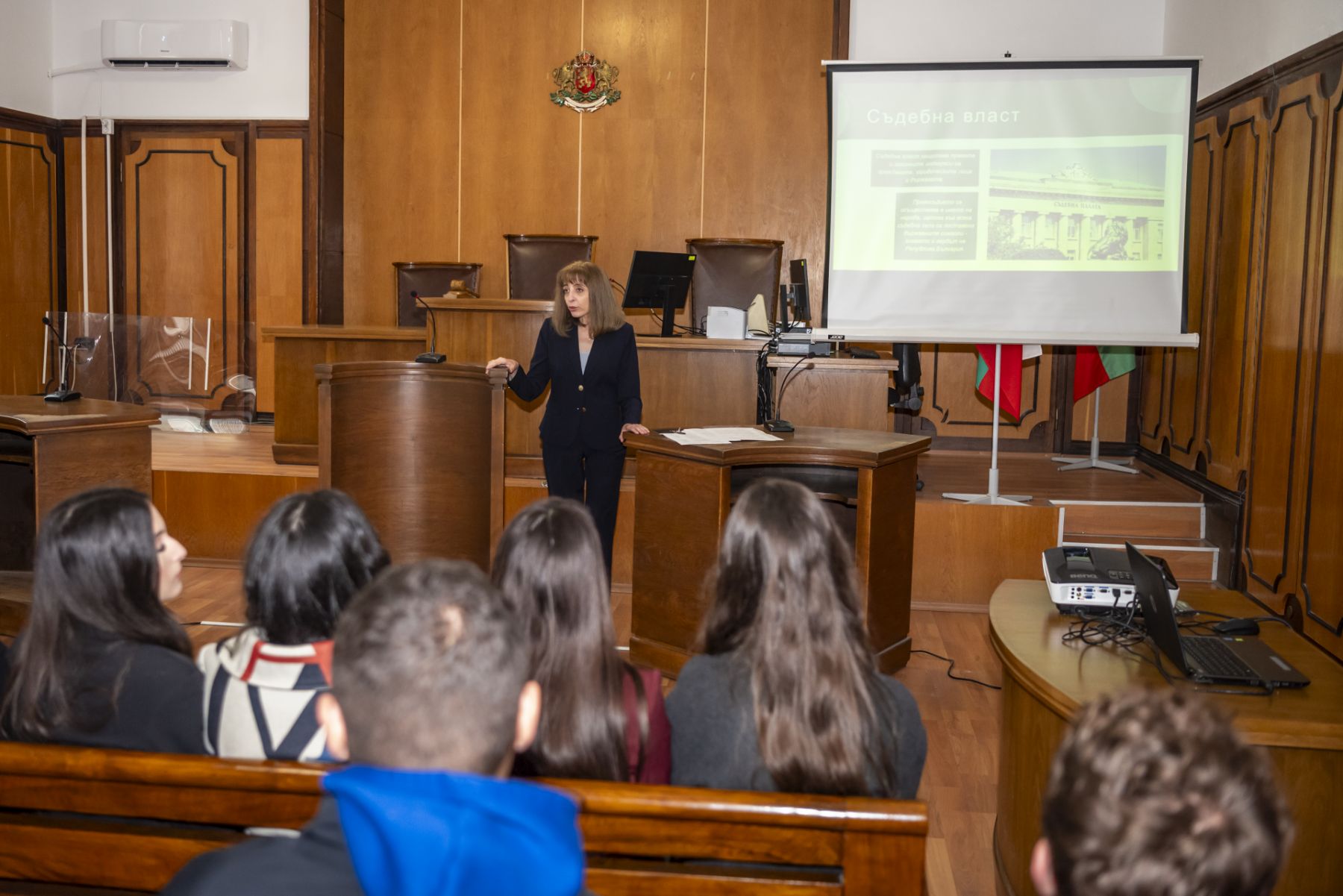 Присъстващите разгледаха историческата изложба, разработена съвместно с Регионален исторически музей - Русе. Съдиите Виржиния Караджова и Велизар Бойчев наградиха децата-победители в конкурса за рисунка „Правосъдието през моите очи“ – естествено продължение на създадената книга-летопис „Правото помни: История на Русенския съд – памет, настояще и бъдеще“. Съдия Мария Велкова изнесе беседа на тема "Кой-кой е в съда" с деветокласници от МГ „Баба Тонка“ и студенти от специалност „Право“ в РУ „Ангел Кънчев.
