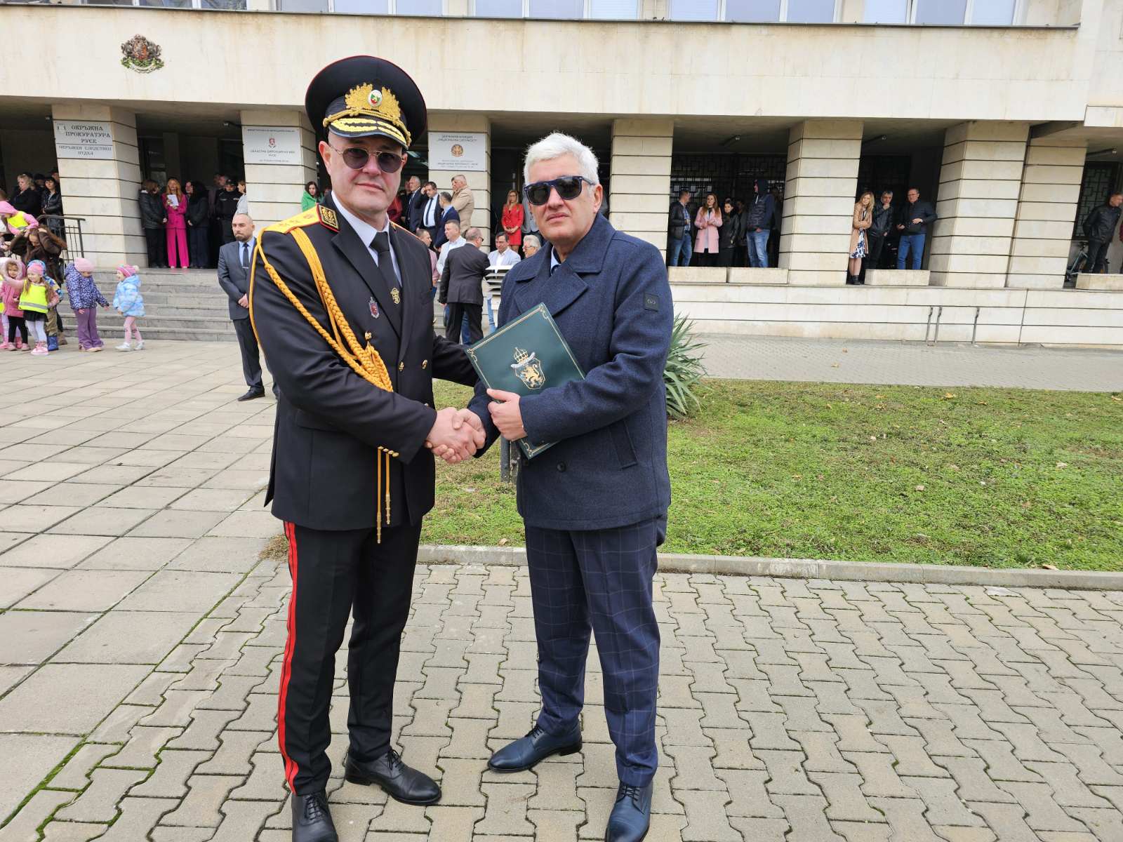 Съдия Петров поднесе поздравителен адрес от името на Окръжен съд – Русе, с който изрази уважение и благодарност към всички служители на полицията, пожелавайки им здраве, сила и вдъхновение в отговорната мисия. В знак на признателност към институцията беше поднесен и венец пред монумента "Признателност и слава“.