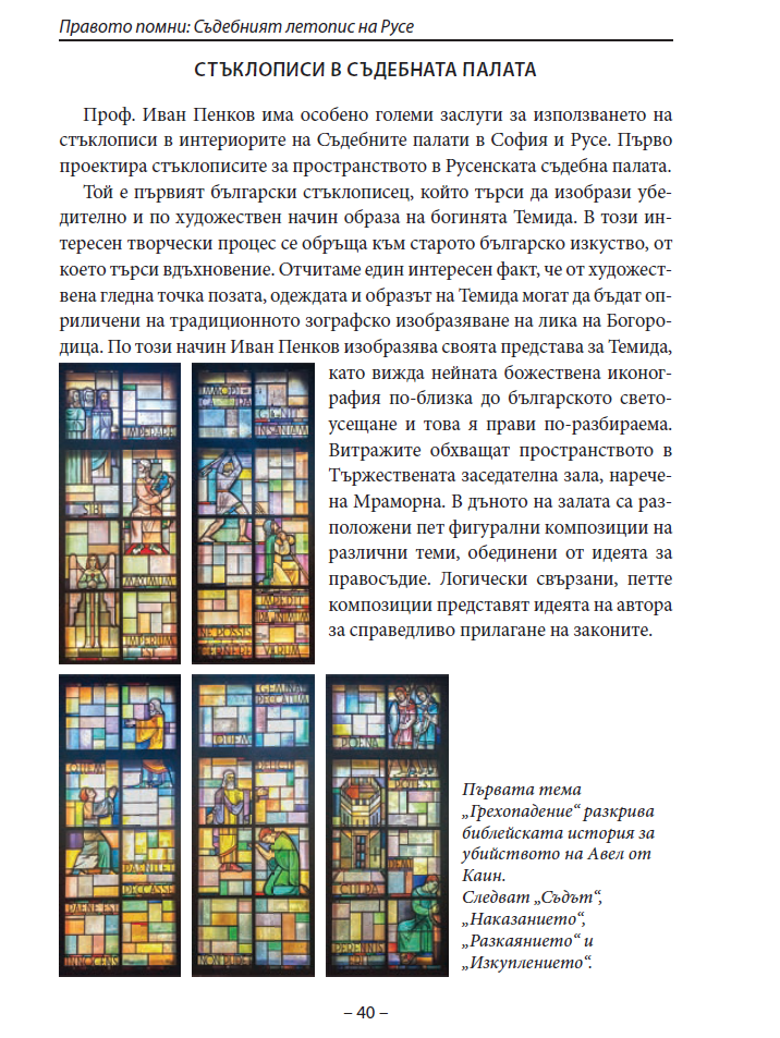 За подготовката на изданието са използвани материали от Регионален исторически музей – Русе, Регионална библиотека „Любен Каравелов“ – Русе, Териториално отделение „Държавен архив“ – Русе и архивите на съда. В него са включени и творбите на победителите от конкурса за детска рисунка „Правосъдието през детските очи“ за деца от 6 до 18 години, обявен през септември миналата година.