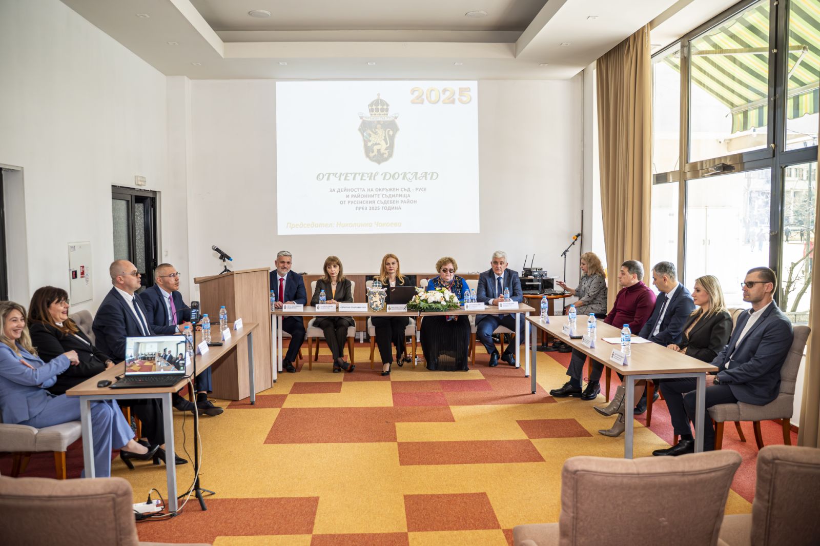 Окръжен съд – Русе представи своя годишен отчетен доклад, който подчертава положителните тенденции в правораздавателната дейност на институцията през 2025 г. Данните сочат за подобряване бързината на правосъдието и оптимизиране на работните процеси, въпреки високата натовареност.