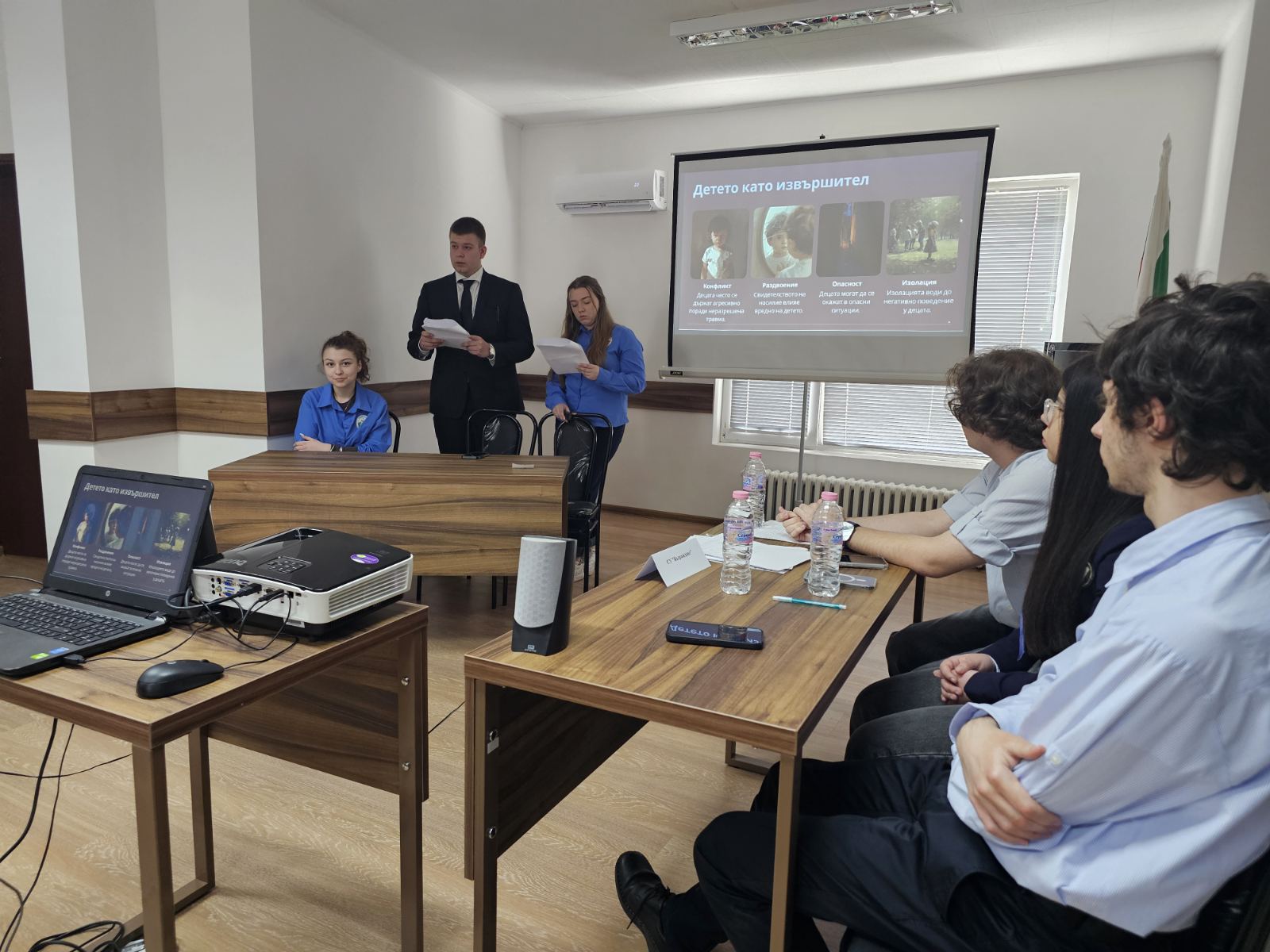 Участие взеха гимназисти от СУЕЕ "Св. Константин-Кирил Философ“, СУПНЕ "Фридрих Шилер", СУ "Васил Левски" и СУ „Възраждане“. Те представиха аргументирани тези и анализи на следните теми: "Достъп до правосъдие и има ли място за използване на интерактивни методи и ИИ"; "Преглед на основните права и свободи. Основни права на децата. Защита правата на човека (Харта за правата на човека)"; "Ефективност на закона при решаване на проблеми с участието на малолетни и непълнолетни лица.", "Детското насилие и последици (агресията в училище)" по въпроси, свързани с основните права и свободи на гражданите, върховенството на закона, детската престъпност и защитата на личността.